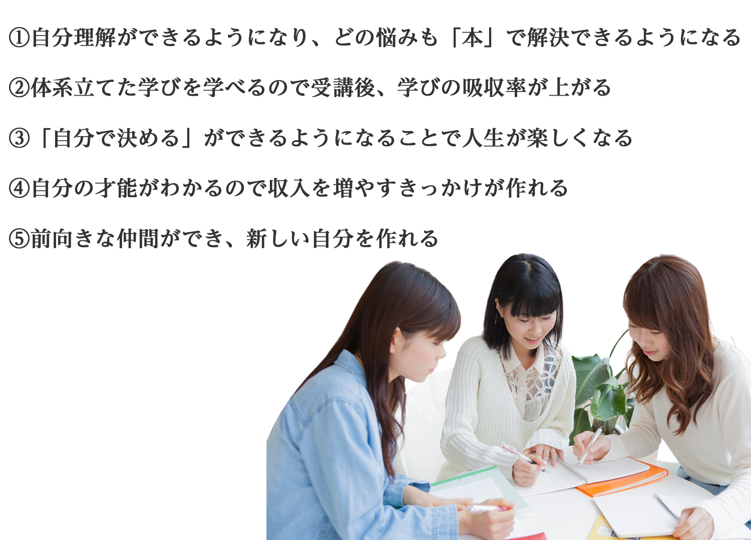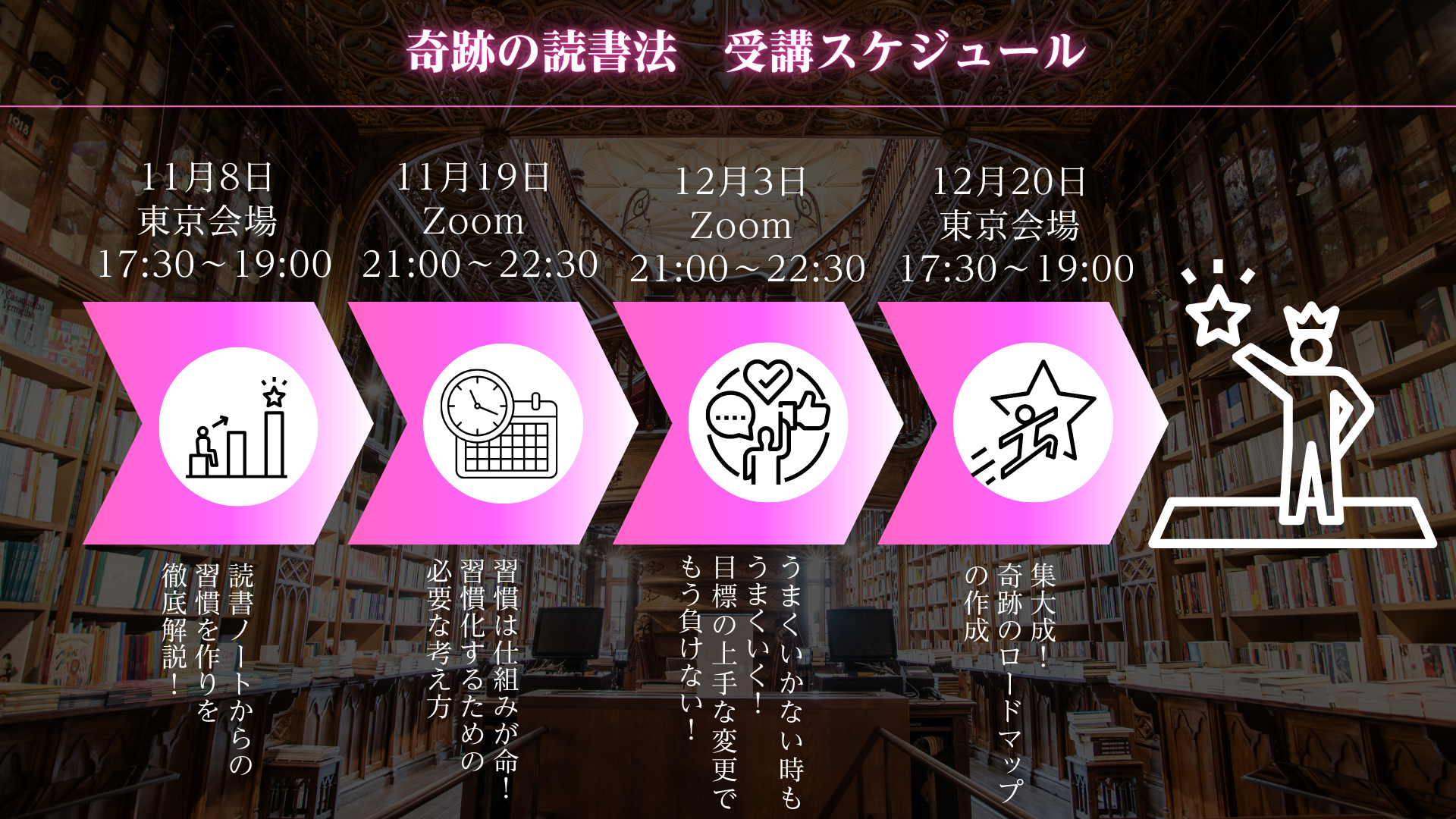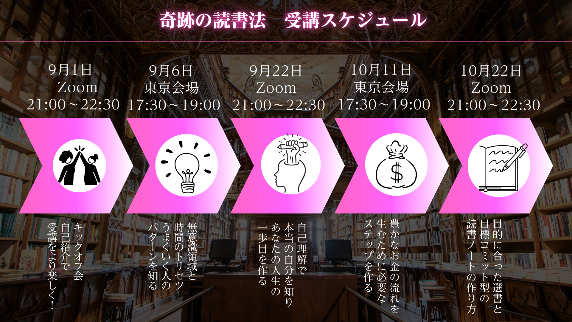 読書から自己実現を叶えるまでに必要なノウハウを1つづつ学べる講座をお届けします。